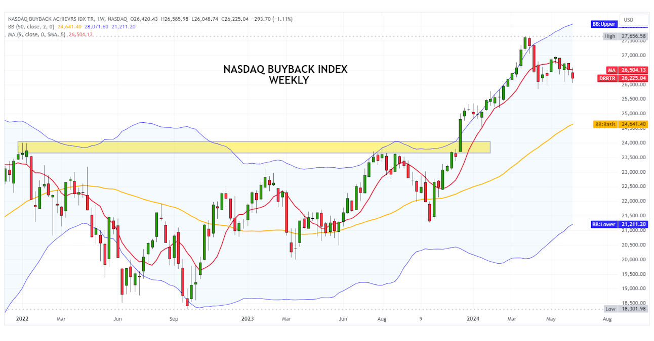The Nasdaq BuyBack Index, after breaking through the solid graphic barrier in the 23,850-24,000 point area, made a quick bullish move and rose to a peak of 27,656 points.