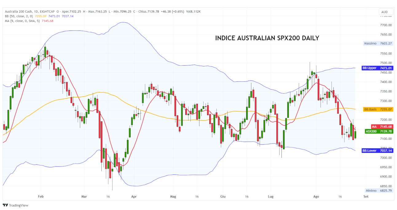 The quotations, after having risen towards the end of July to a peak of 7,500 points, underwent a rapid correction and fell back to the 7,100-7,080 point area.