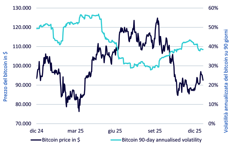 - Volatility has compressed at the margin, particularly for bitcoin, as ownership consolidates among longer-term, institutionally aligned holders.